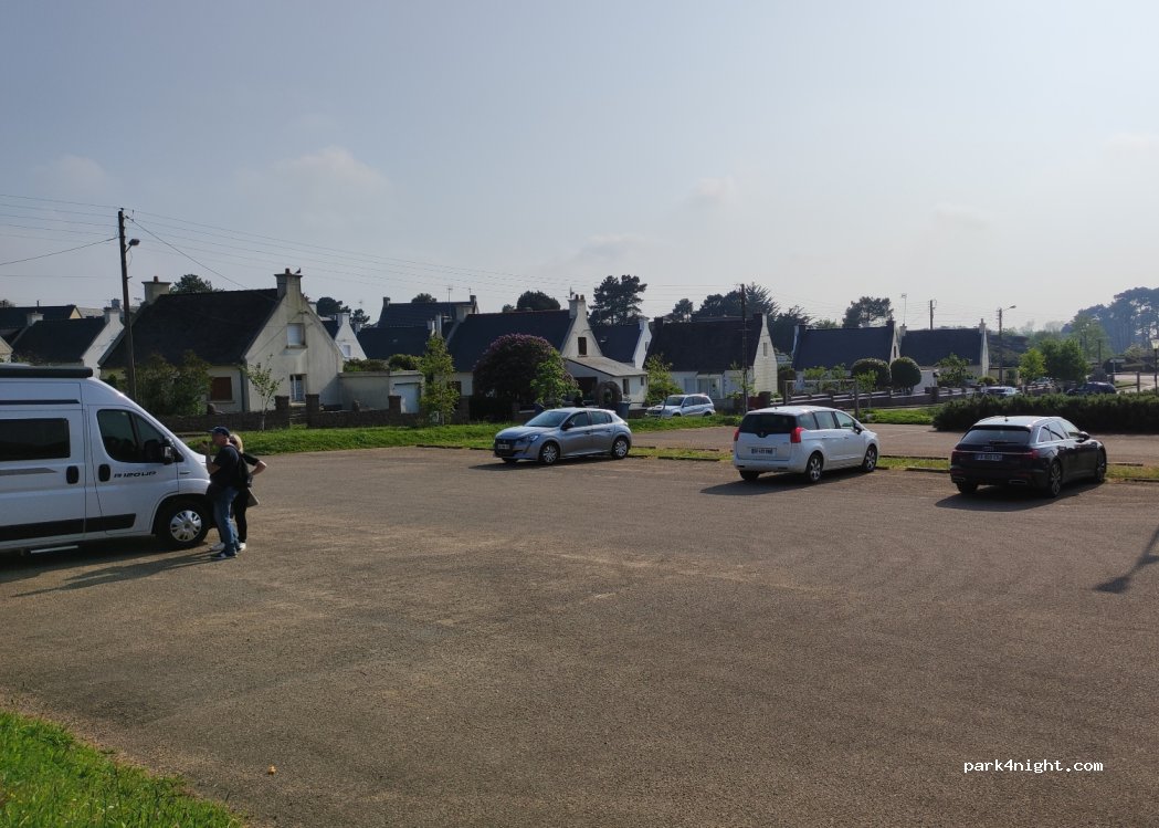 Hier sta je gratis, op alle omliggende parkings voor de roze granietkust betaal je € 6,90. Wees geen dief van je eigen portemonnee. Plaats genoeg voor campers (24) zonder hoogtebalk. Vuilnisbak aanwezig.