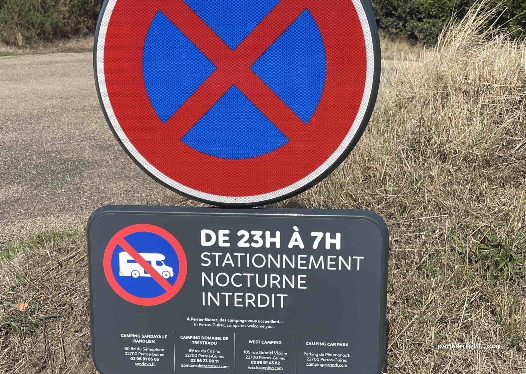 Je ne sais pas si le non respect des pardons à été commis par des irrespectueux maintenant interdit au camping-car de 19h à 8h. Merci à eux. Panneau à l’entrée. et gendarmerie qui tourne.