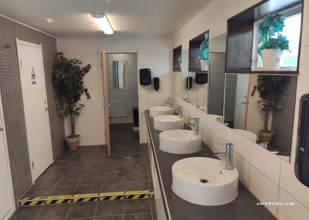 Sehr schöner Platz mit freundlicher deutschsprachiger Rezeption. Wir waren nur zum entleeren unserer Toilette dort. Für 50 SEK vollkommen in Ordnung.