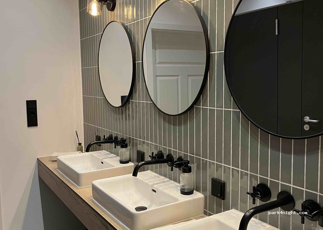 The campsite is situated in a peaceful, rural location. The pitches are open-planned and spacious. There is a bar on site and WiFi is available in this area. The bathroom is very good, but it is limited to one person at a time. No complaints!
