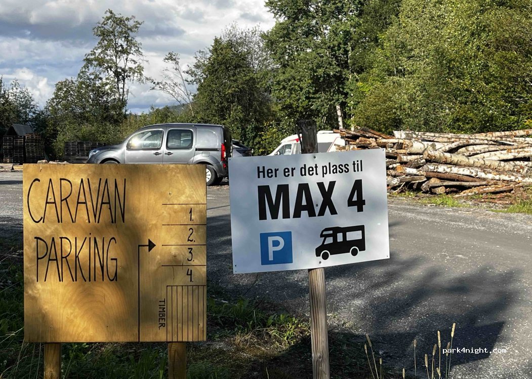 Now maximum 4 places. Quiet gravel parkinglot next to norwegian culture of handbuildt Viking ships. Near water, gas station and groceries store.