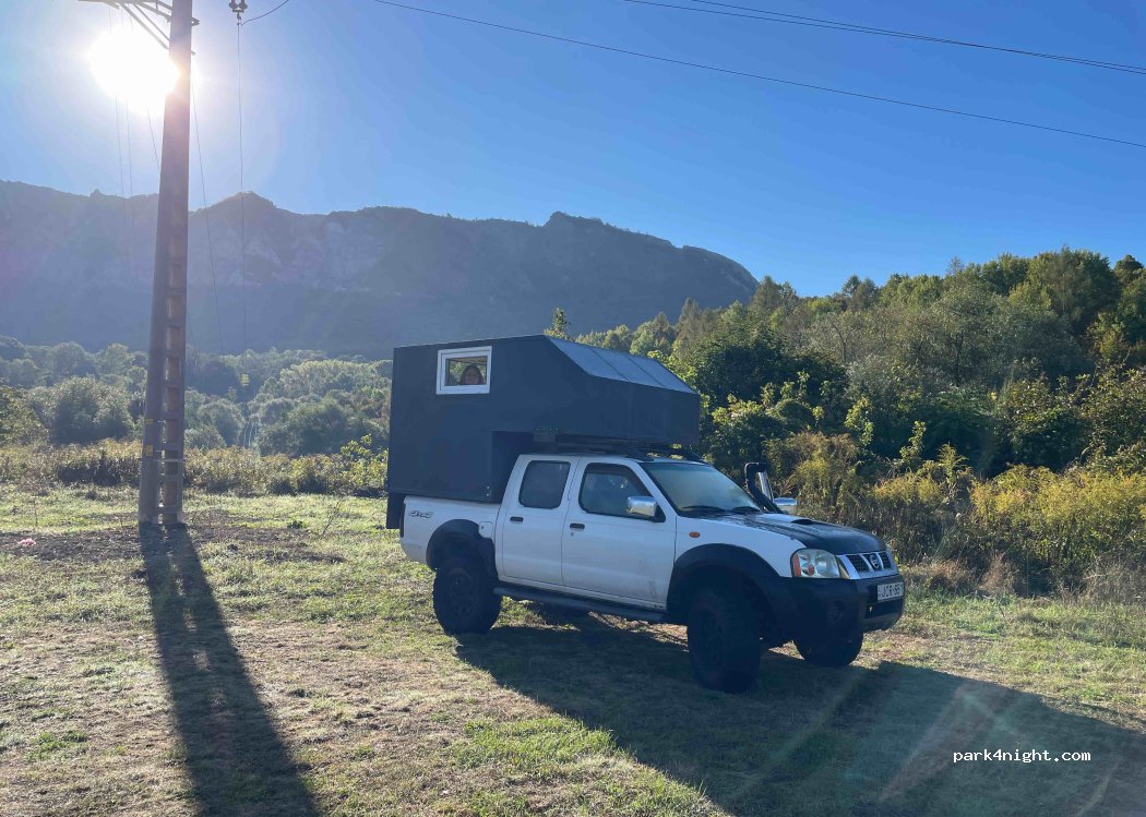 Krásné místo na přenocování, ale večer se tu začali scházet místní mladí a sjížděly se tu auta. Necítili jsme se tu bezpečně a raději odjeli.