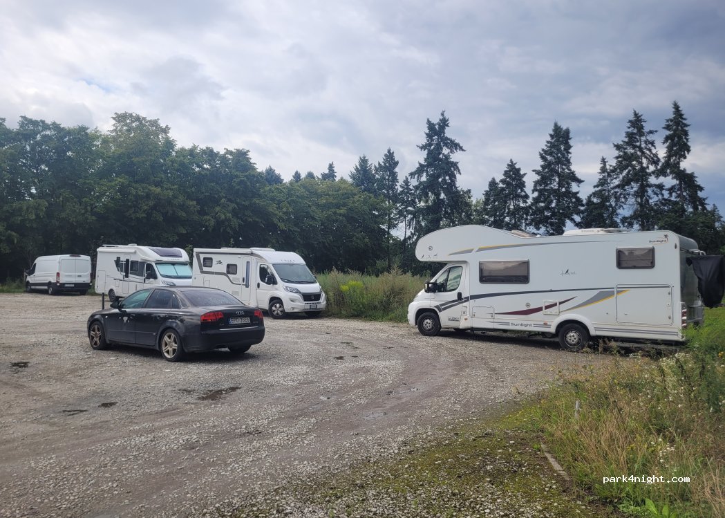 Abbiamo sostato qui una giornata ed una notte. si paga solo dalle 8 alle 18 2 zl l'ora. c'è un limite di altezza di 3.20 ma l'abbiamo visto solo andando via quindi potrebbe essere che ci sia una anche un'altra strada senza problemi di limiti. Dopo le 22 e sino alle 8 della mattina non passa nessun treno. Di notte pace assoluta. anche di giorno poco frequentato. consigliato! Nessun servizio