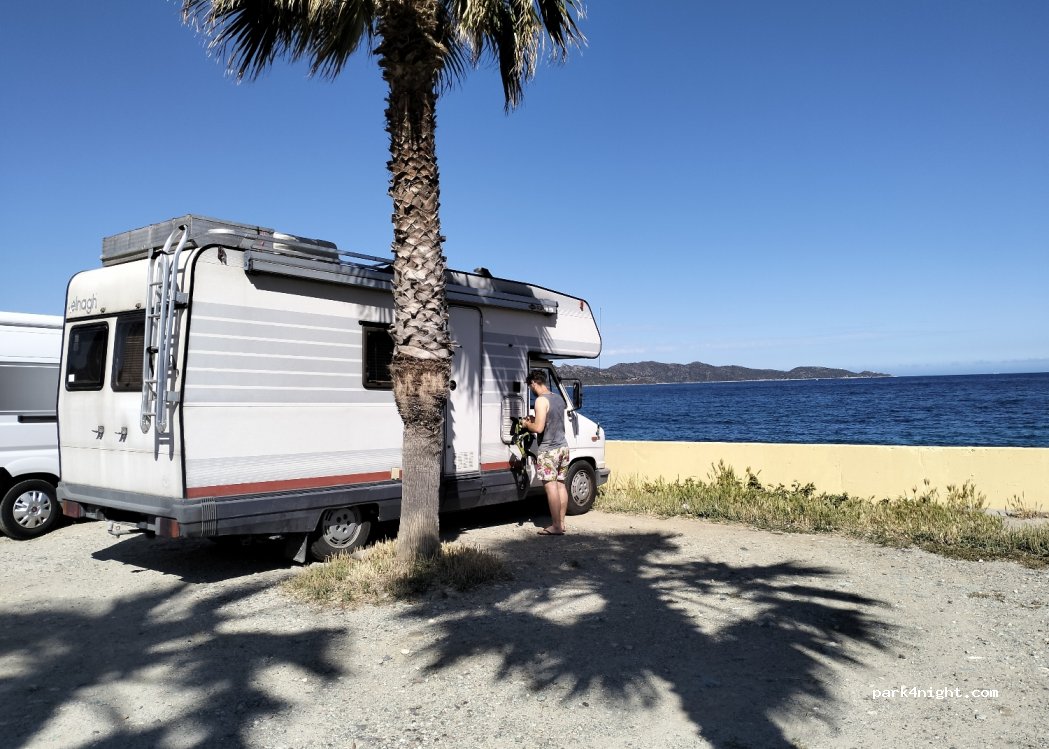 This is not a hotel parking and there is no motorhome ban sign. Also there is direct access to the sea!
