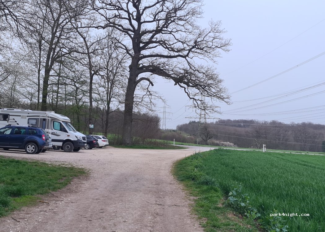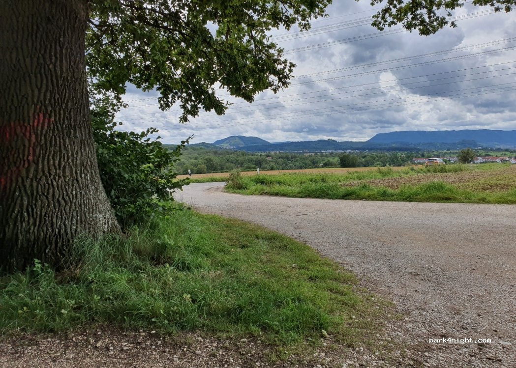 On the edge of the forest above the village of Bempflingen there is this wonderful place to spend the night. This is a parking lot for hikers and dog walkers. The forest is full of forest paths.