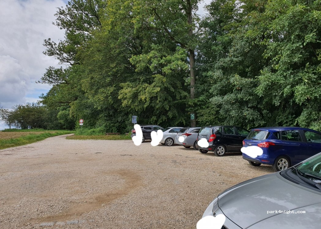 Geschotterter Parkplatz, nah an der Landstraße, viele Leute mit Hunden kommen und gehen. Wir waren nur kurz für eine kleine Mittagspause dort. Ist definitiv groß genug, dass auch ein 7 m langes Wohnmobil dort einparken könnte. Keinerlei Versorgung, keine Mülleimer! 2 schattige Holzbänke (ohne Tisch) unter großen Bäumen gibt es am Rand.