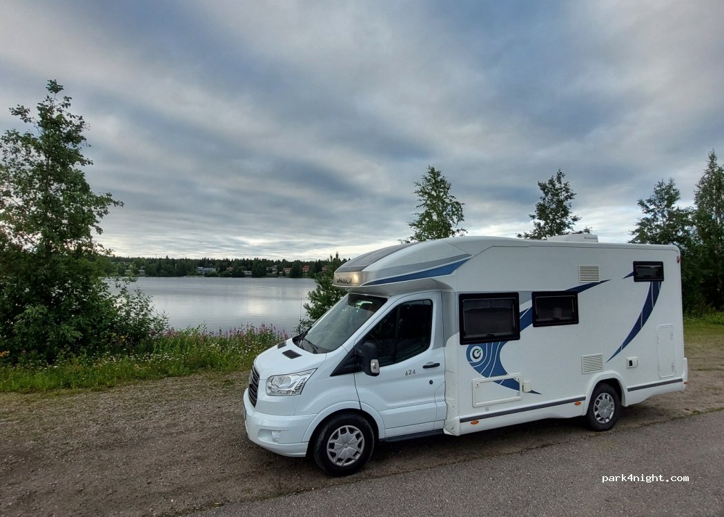 Nice large parking area next to the lake. Trains are running close so it might disturb someone’s sleep. We did not mind those. Also this is potential place for teenagers to hang around during the weekends.