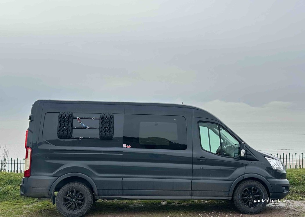 Lovely park up overlooking the beach, however they have now put up 6’10” (2.1m) barriers to stop larger vehicles accessing the majority of the car park. There are limited spaces before this restriction, however these always seem to be taken up by cars.