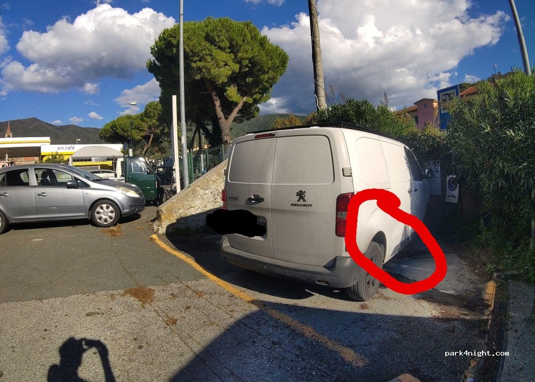 Parking at the station, with spaces much larger than those in the service area opposite. The parking lot is loaded. Direct access to the station. We stayed 48 hours without problem, the carabinieri passed, everything is ok.
