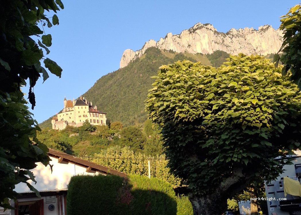 Vue sur le château , Camping familial très calme , super accueil . Visite Annecy en vélo , le top ! A refaire...