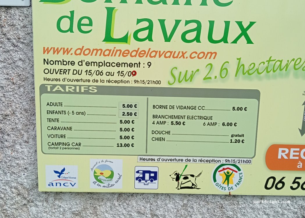 Le propriétaire est très sympa et les sanitaires sont datés mais propres. Si comme moi vous avez un sommeil léger attention car les vaches qui bordent le terrain de camping sont équipées de cloches qui tintent toute la nuit et le coq se lève à 6h30.Dommage car le lieu est vraiment beau et invite à la quiétude.15€50 pour un cc,5,50€ enfant +5 ans,2,50€ -5 ans,1€20 le chien,6€ l’électricité.