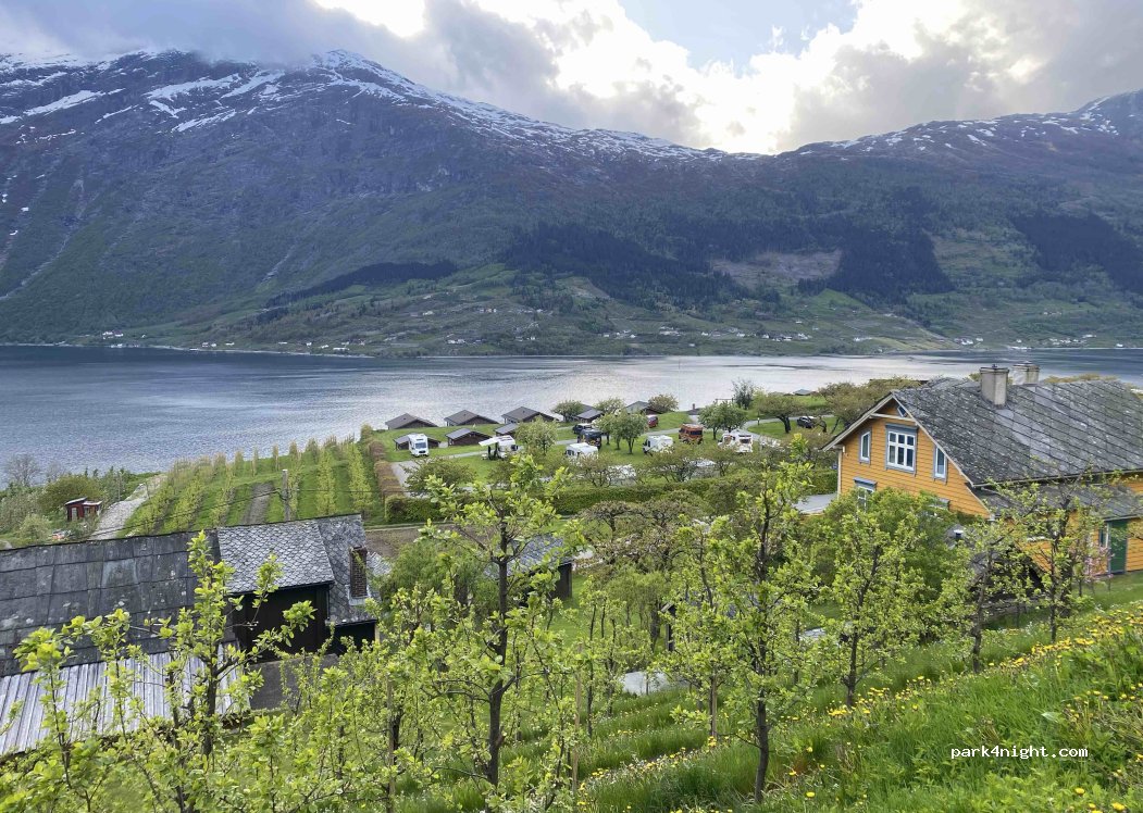 Camping ligt mooi in een fruitboomgaard. Je zoekt een plekje als je mazzel hebt kijk je uit over het fjord. Sanitair is prima en ontvangst is vriendelijk. 3 nachten hier gestaan.