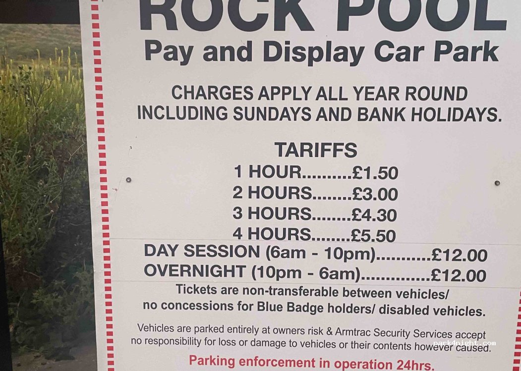 It’s £10 from 10pm till 8am but £7 for the day. Unless you arrive dead on 10pm and leave at 8am, you will also have to pay £7 for the evening and £7 for the morning. £24 for a overnight in a gravel car park with no facilities and no view is not good value!