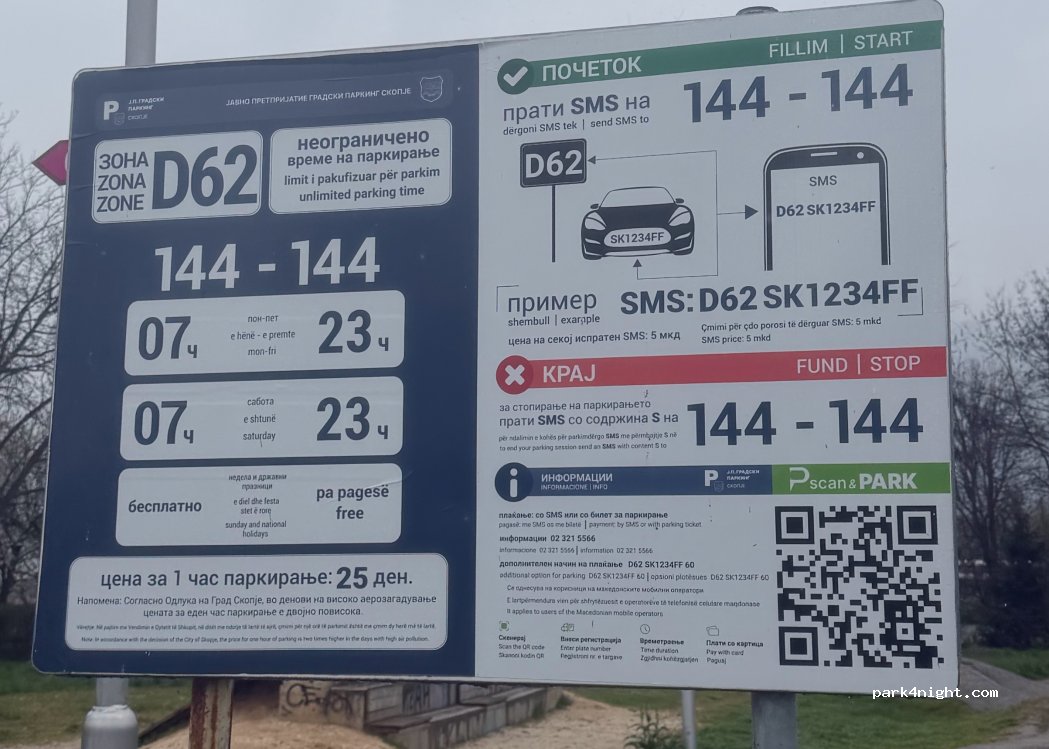 Shaded paid parking (except Sundays and public holidays) in the large and green City Park of Skopje. no services. small park of games and picnic tables. 30 minutes walk from the historic center. quiet at night.