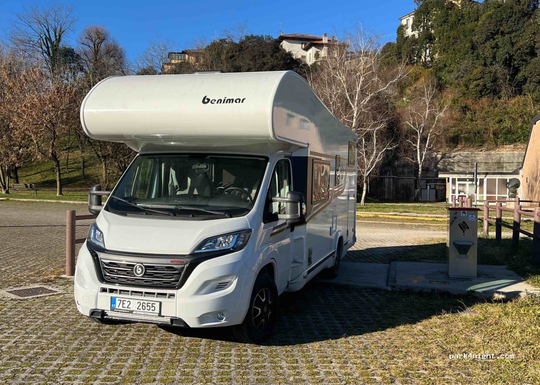 Great spot! We stayed only during the day. A few motorhomes were parked there. There’s a great ice cream place just a 5-minute walk away: Gelateria Il Dolcefreddo. Water filling and disposal facilities were functional. Many thanks to the municipality!