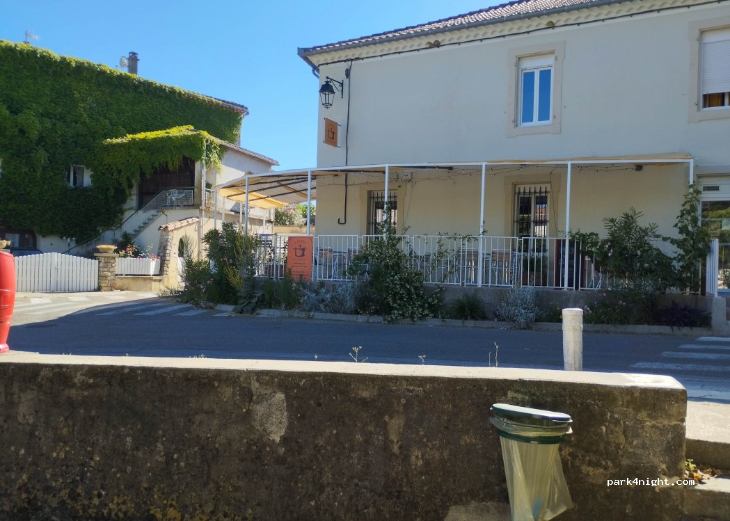 L’accès derrière le bâtiment est fermé, donc eau au jerricane. Aucun autre service. Parking auto, 2 Ccars présents. Aucun commerce sur place. Tranquille pour une nuit. Merci à la municipalité.