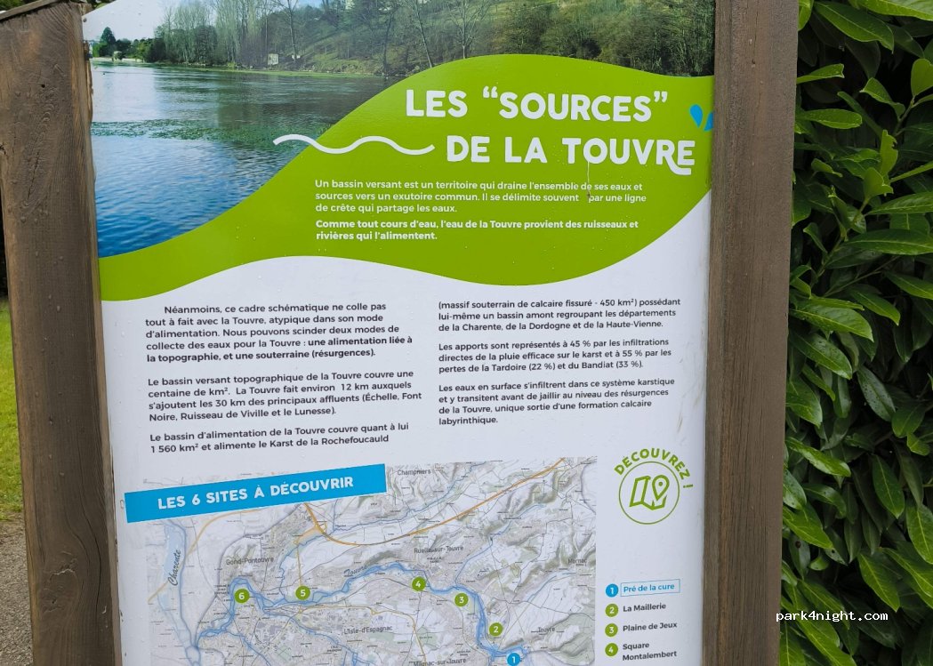 Il y a une barrière de hauteur et un panneau interdit aux camping cars. La source de la Touvre n'est pas accessible non plus.