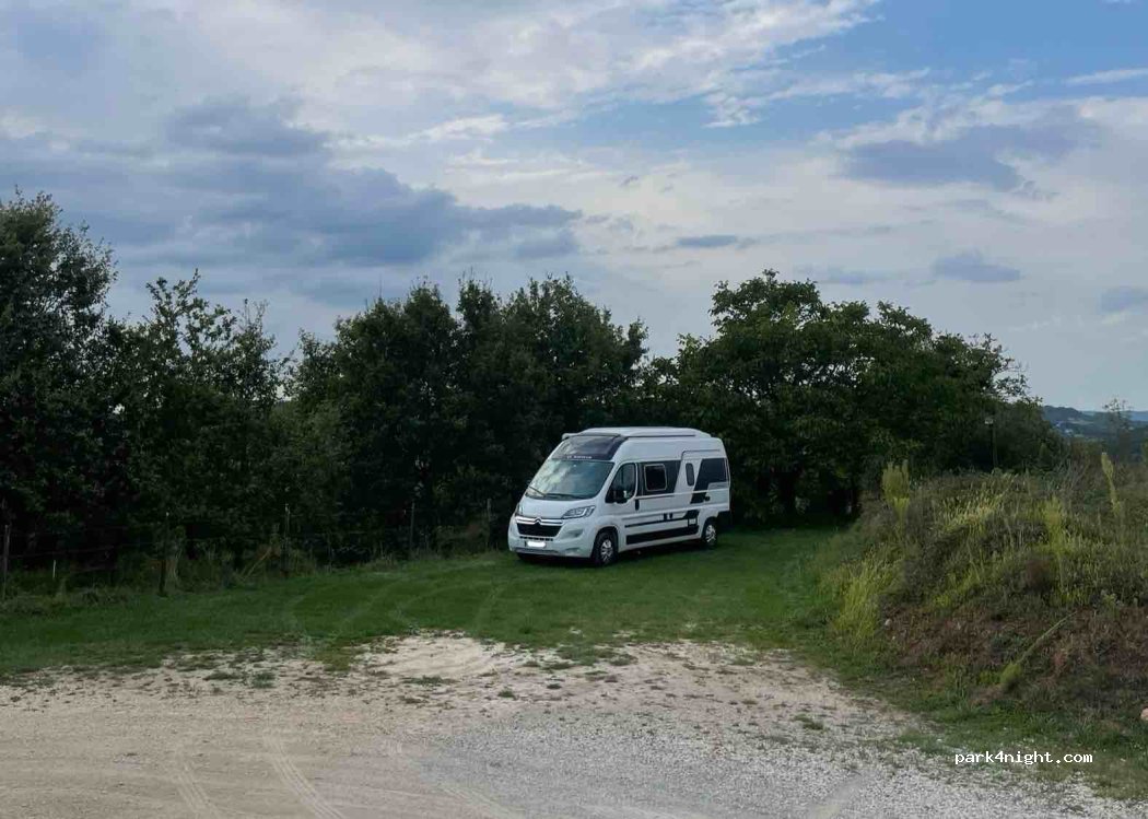 Super endroit. Nuit très calme sans circulation. Accès avec notre camping-car de 7,50 m sans aucun problème. Coucher de soleil magnifique et vue à 360° sur la campagne environnante.