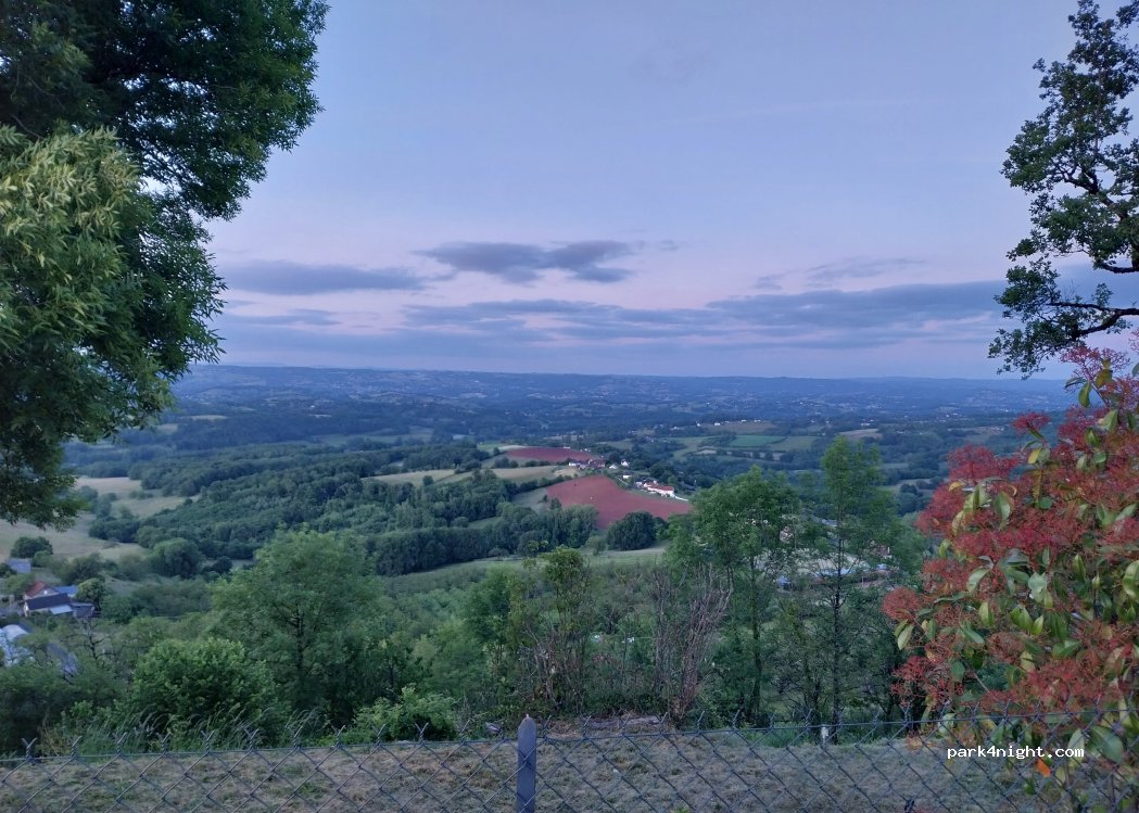 Une vue imprenable sur la Corrèze d’un côté et le Périgord de l’autre, plus personne après 23h, tables de pique-nique, wc & eau, que demander de plus ?