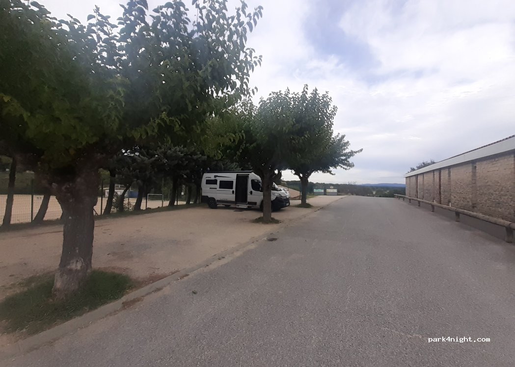 Parking des bus scolaires. Utilisable hors période scolaire. Beau point de vue. Nuit calme. A 2 pas du village et beaucoup moins fréquenté que le parking de la zone de jeux. Lever du soleil au p’tit matin…