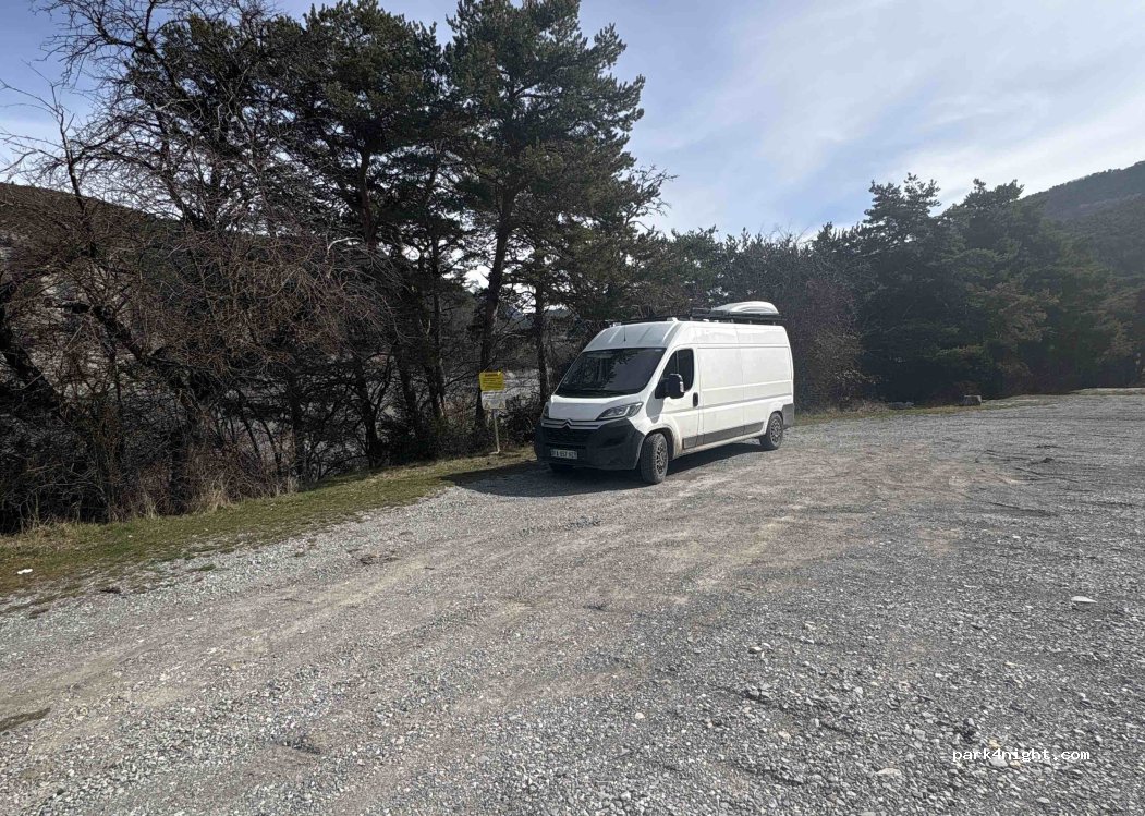 S’il vous plaît, ne vous y installez pas (chaises, tables, store….) et n’y dormez pas; du moins en période estivale. Pour les plus pingres, une aire est mise gratuitement à notre disposition dans le village. Nous avons la chance de pouvoir nous y garer pour aller au lac. Avec tous ces abus, ils vont finir par mettre des barres de hauteurs…