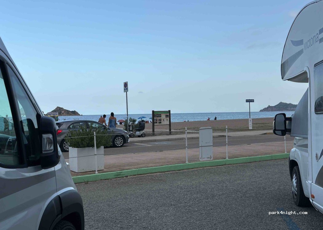Air de camping-car très bien placé. A 20 m de la mer, très bien pour le prix. Nous avons payé 21€ pour une nuit en Juin. Électricité en plus. Toutes les commodités sont inclus sauf la machine à laver. Rapport qualité-prix très intéressant. Pas vu mieux de toute la Sardaigne