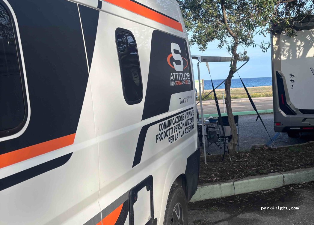 Bon endroit pour stationner, la plage est en face, en marchant un peu on trouve quelques rochers. La petite station balnéaire est mignonne. Calme et familiale. Sanitaires basiques mais propres. Barbecue à disposition, tarif 25 euros pour 1 van et 4 personnes, 3 euros pour l'électricité, les 2 personnes à l'accueil sont sympas et on peut communiquer en franglaisitalien car ils sont de très bonne volonté, 2 nuits ici