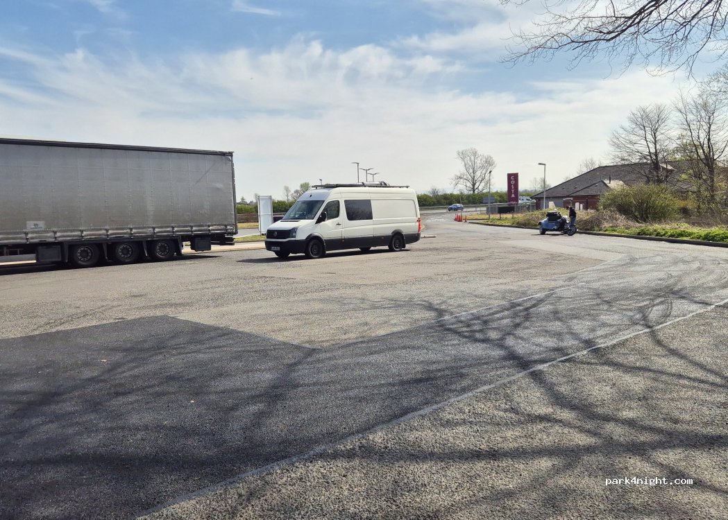 One of the few free places you can stop on the motorway in this area. All the other motorway service stations will charge you for when you go over 2 hours so it’s nice to get a free one. Yes it’s a bit noisy but it does have 24 hour toilets and petrol station / shop
