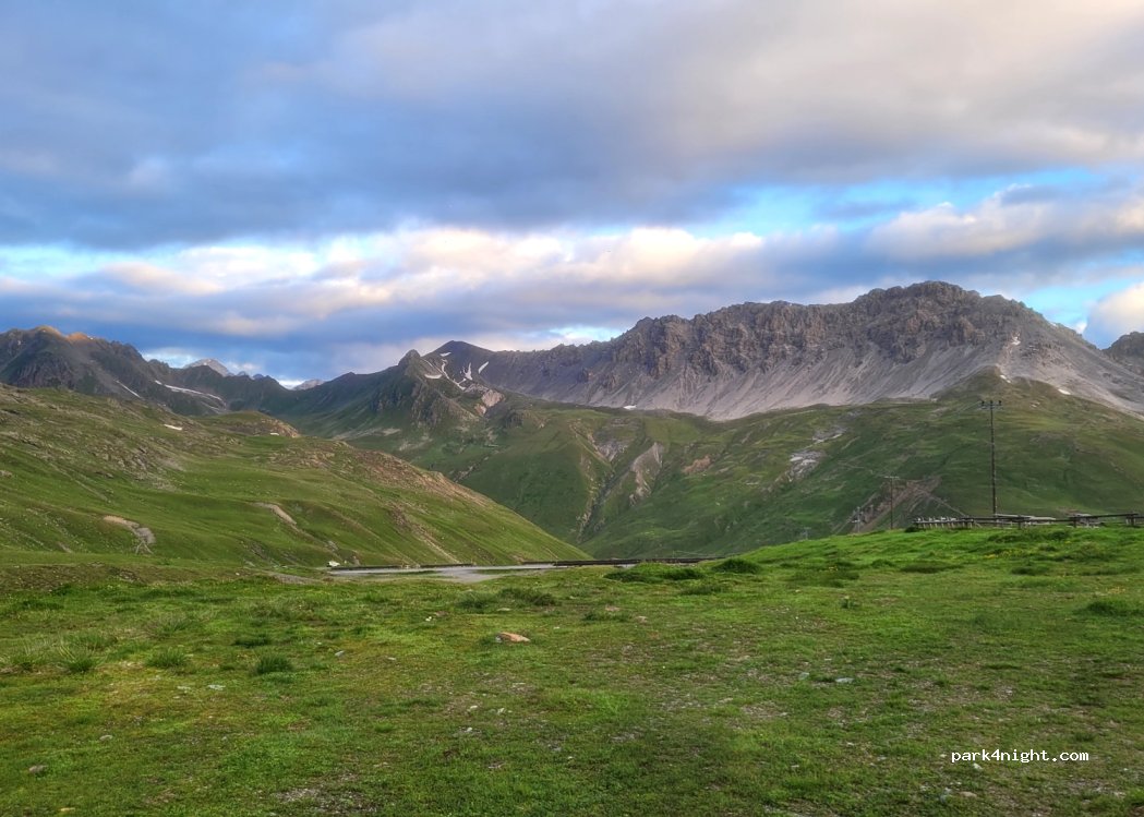 Parking en pleine nature à 2400 mètres d'altitude et environ deux km du Stelvio.