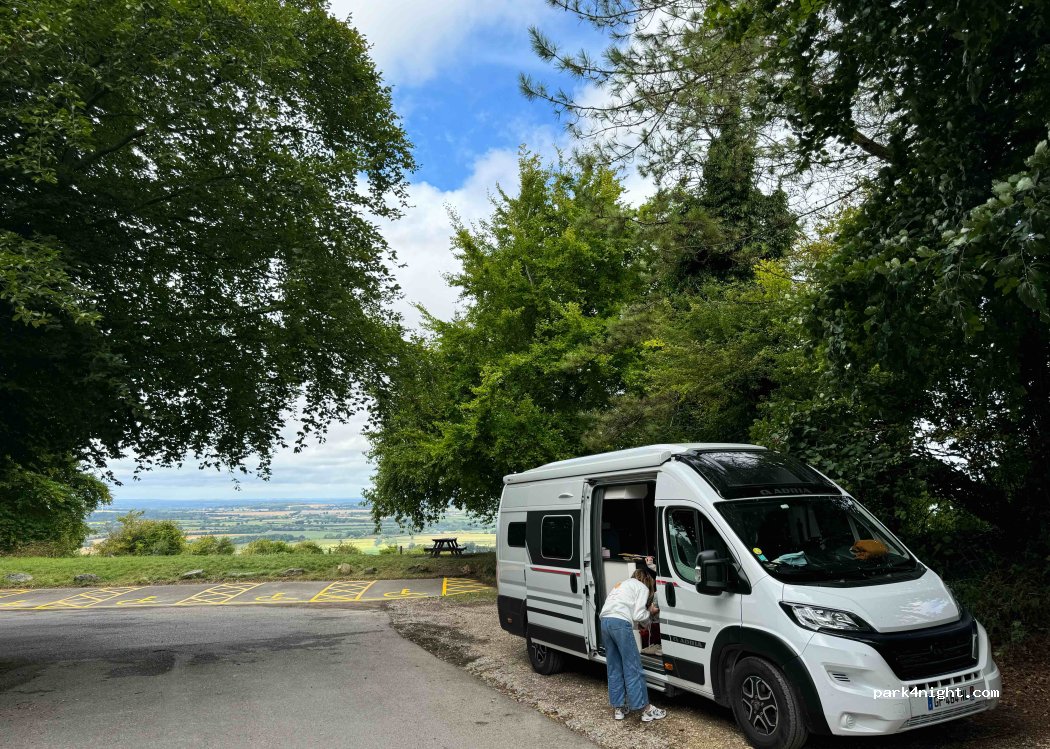 A lovely spend the day location. Picnic area, dog waste bins, plenty of space to park and loads of good walks. Shame about no overnight parking (minus a star) but can’t fault it otherwise. Some decent overnight stops close along the ridgeway. Single lane up a hill to entrance but passing points and used by trucks so enough space. Ok signal on 3. Will return.