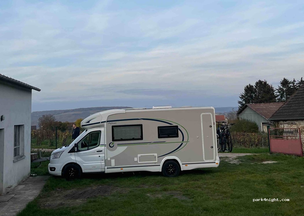 Kleiner gemütlicher Stellplatz im Hinterhof mit Blick auf die Weinberge. Sehr netter Empfang und leckerer Champagner.