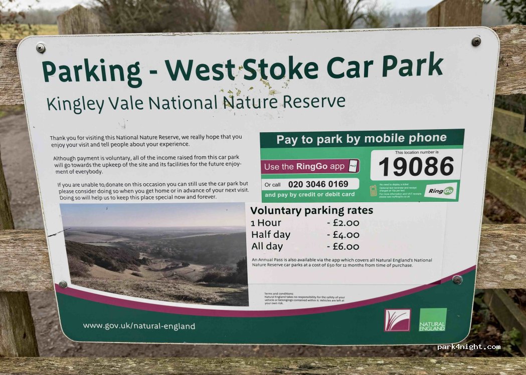 Free car park close to the Kingley Vale nature reserve. Stayed here overnight with no problem.