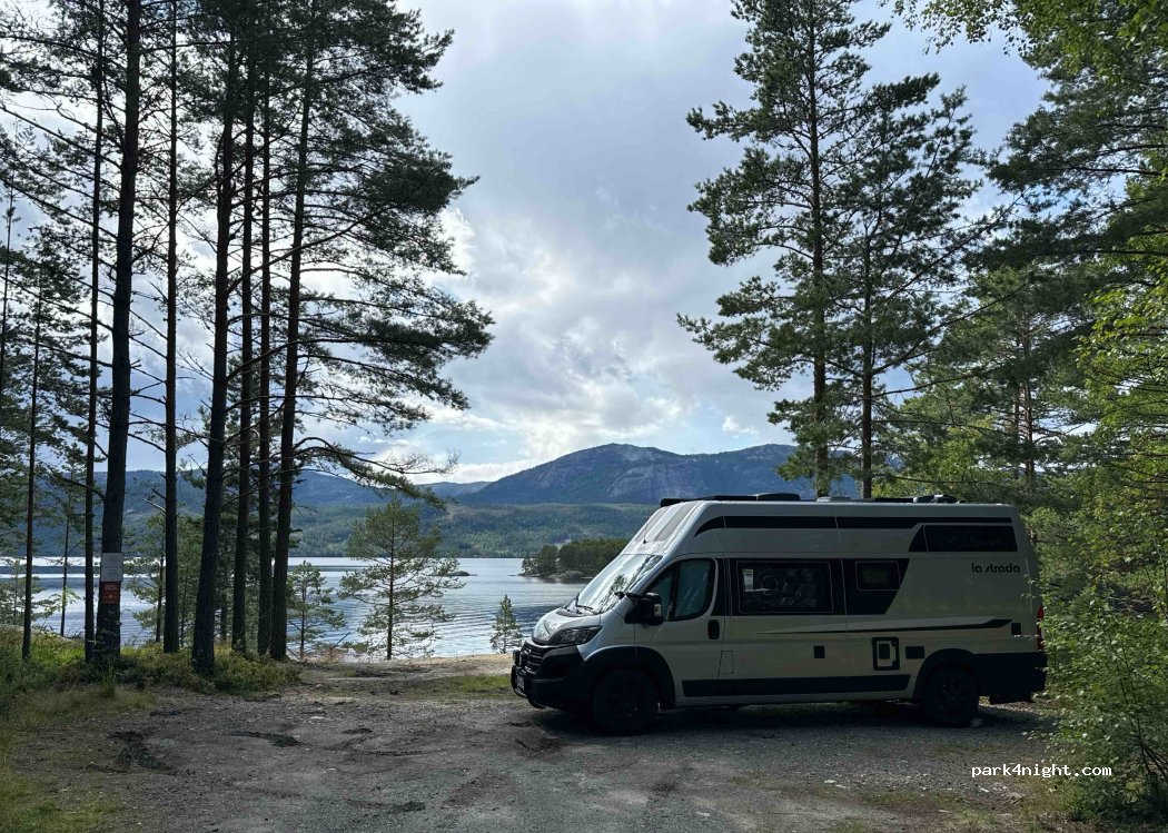 Wir hatten sehr viel Glück und haben gestern Mittag diesen Platz gefunden. Wir hatten einen wunderschönen Tag und eine ruhige Nacht. Unser bisher schönster Stellplatz in Norwegen. Bezahlung per Paypal. Kleiner Tipp: falls dieser Platz belegt ist, gibt es schräg gegenüber eine Einfahrt in den Wald und dort gibt es einen etwas größeren Bereich, wo man auch übernachten darf.