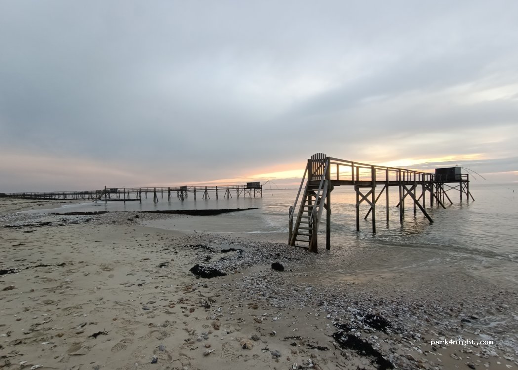 excellent spot, nous y avons passé la nuit sans bruit. c'est à côté de l'océan avec vue sur les carrelets. nous recommandons ce lieu magique.