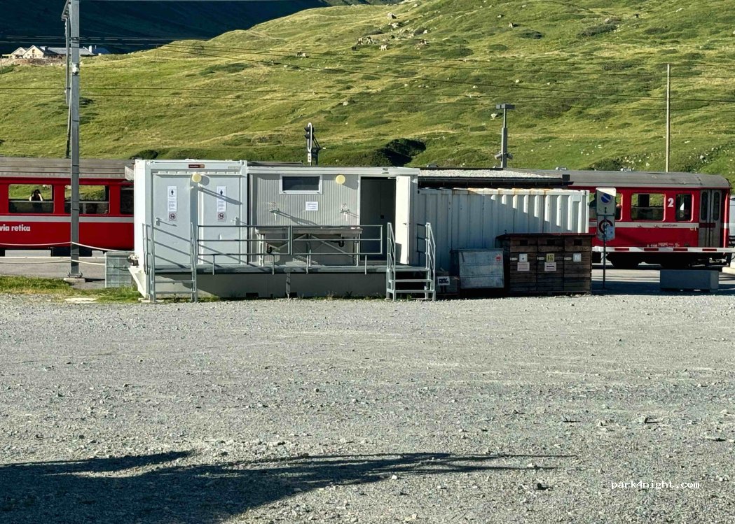 Parking appartenant au camping Morteratsch , ouvert en periode estivale , réservation sur internet , possibilité de prendre le telepherique avec son billet de stationnement cc , au milieu des alpage , je recommande vraiment