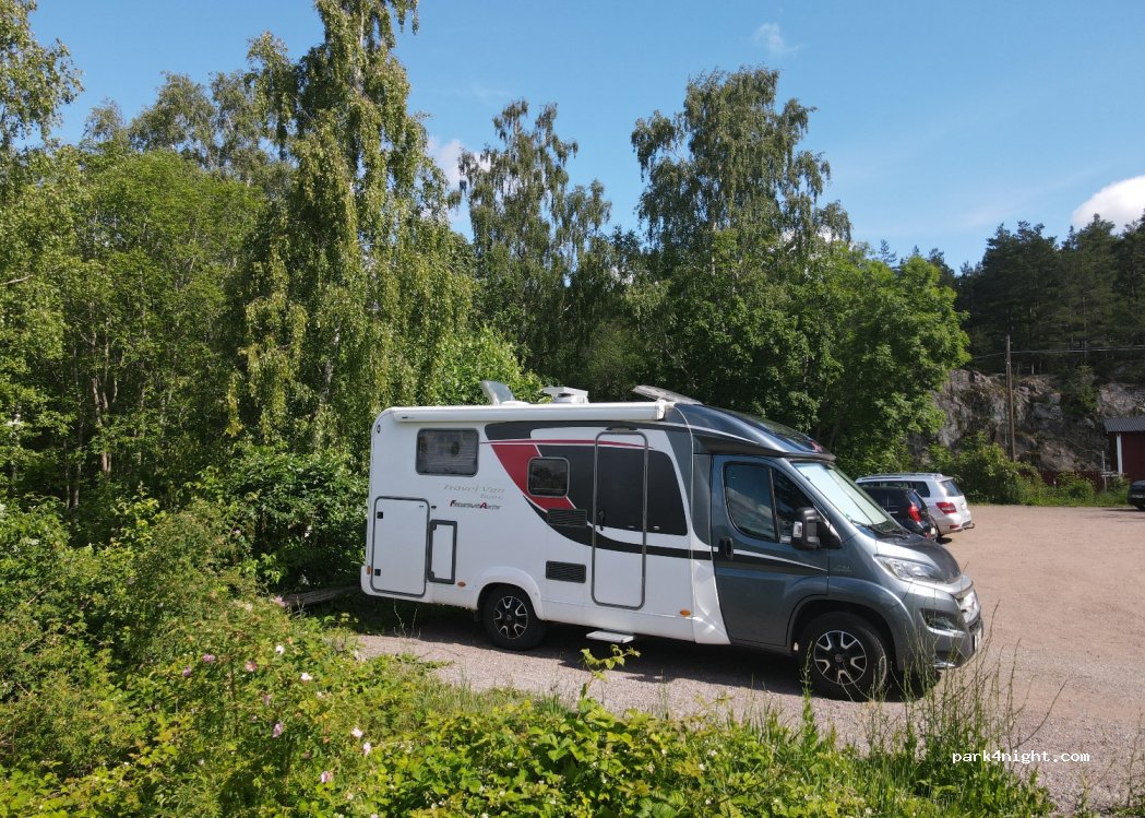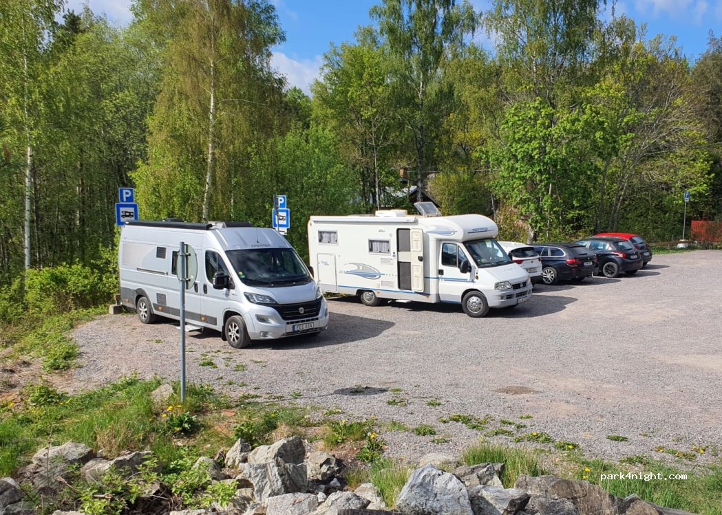 Rustige plek, vlakbij Kolmärden dierentuin. Je kan er gemakkelijk de bus nemen naar daar. Wandel naar de hoofdbaan en neem de 420. We sliepen er 2 nachten heel rustig. Er is wel maar plaats voor 1 camper dus je moet geluk hebben. Je kan fijne wandeling maken naar mooi uitkijkpunt!