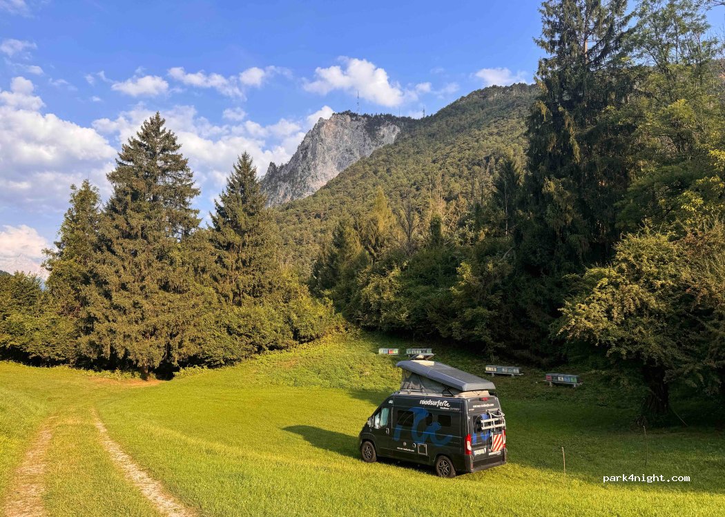 Posto incantevole, parcheggio gratuito presso l’azienda agricola Damos. Strada stretta, ma solo per 2 km dalla SS 51. Abbiamo passato una piacevole notte sotto le stelle lontano dal caos e acquistato qualche prodotto derivato dai fiori coltivati dai proprietari. Consiglio vivamente