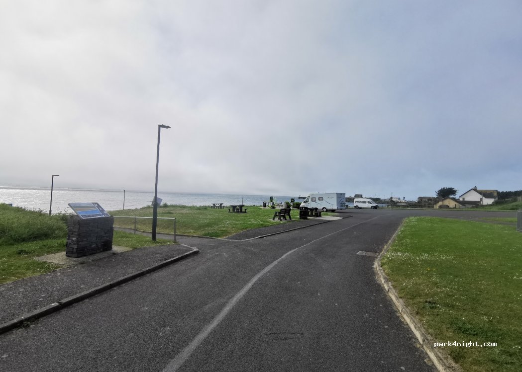 Beautiful park-up. Picnic benches, bins and toilets available. Coffee van there Friday-Sunday. Stunning beach and made for a peaceful night away.