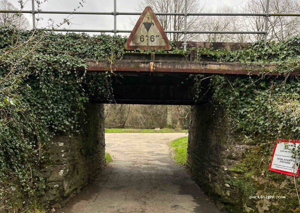 De brug is 6ft6in hoog, alleen voor zeer kleine voertuigen, zeer smalle kronkelende toegang.