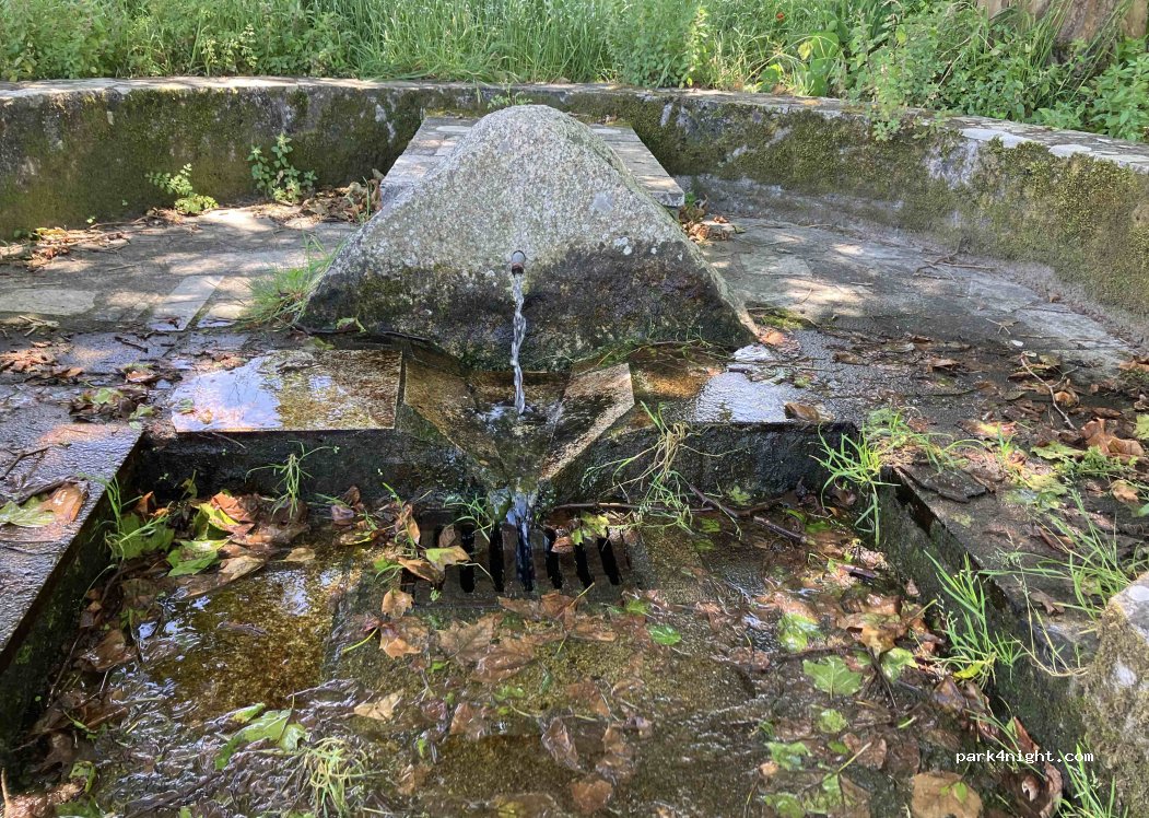 Endroit pour passer la journée et la nuit. Il y a de la place pour 4 fourgons ou camping-cars. Juste en face de la plage. Une fontaine en retrait.