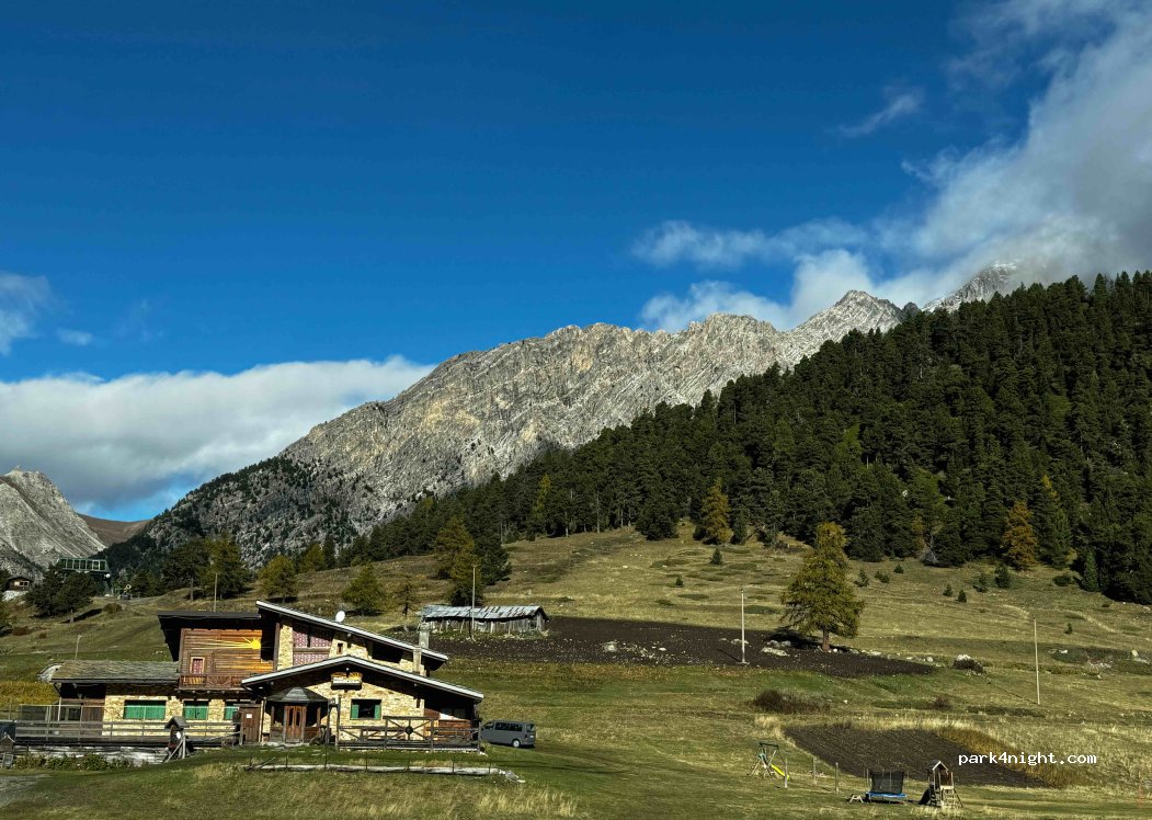 Parkplatz am Rande von 2 Skigebieten. Bitte beachten Sie, dass der Weg (500m) nicht asphaltiert ist, er ist mit einem kleinen SUV oder einer ausreichend hohen Limousine befahrbar. Der Ort ist sehr ruhig, wir haben eine Nacht dort verbracht. Morgens muss man früh aufstehen, da viele Wanderungen beginnen.