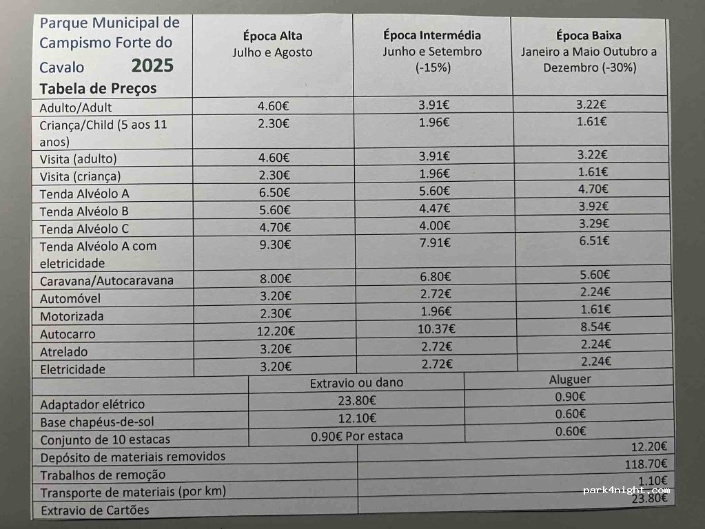 5.60€ - 8€/camper + 3.228 - 4.60€/ adult