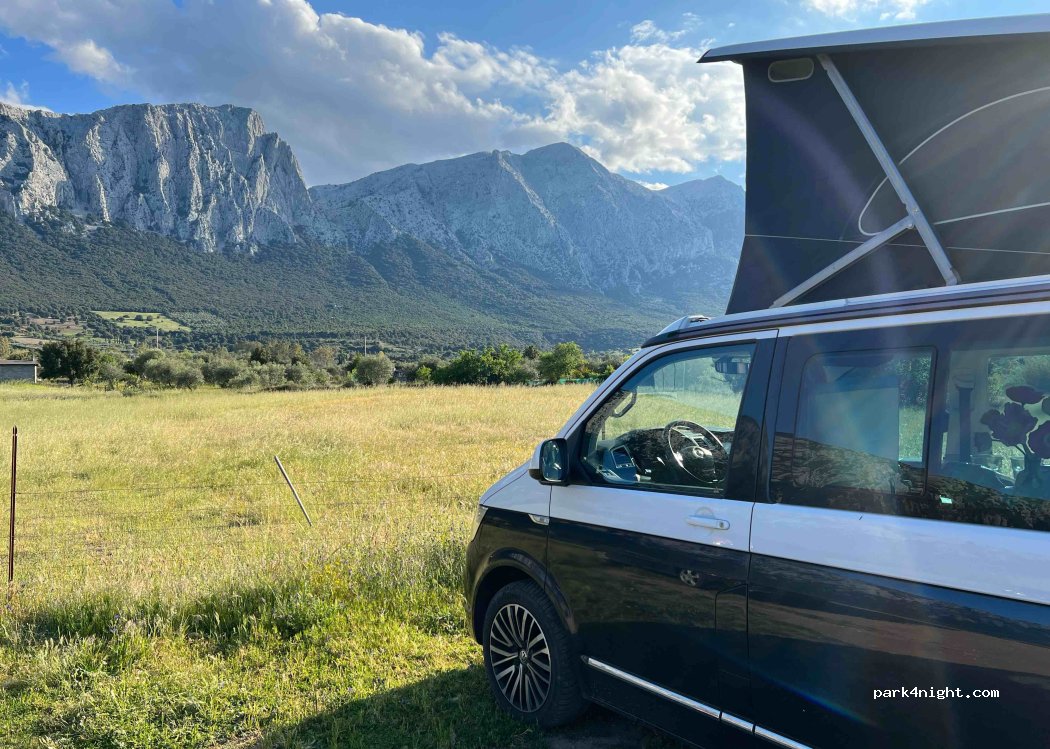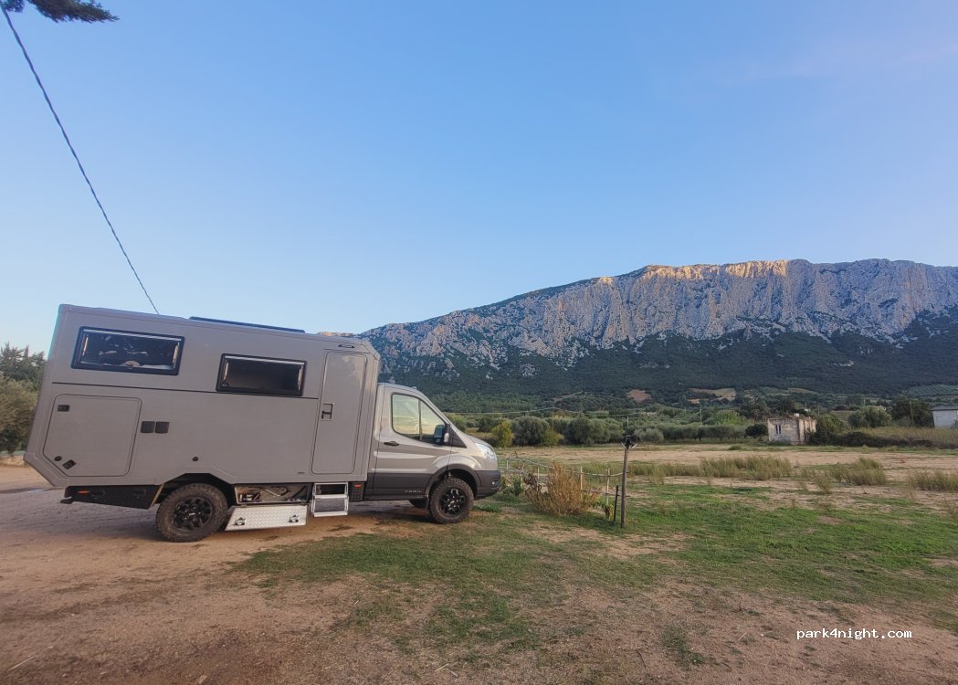 Vista spettacolare sulle montagne e pace incredibile! La cena sarda era buonissima e il personale disponibile. No elettricità, possibilità di accedere ai bagni e alla doccia del ristorante/agriturismo (solo di giorno, sono chiusi di notte). Prezzo pernottamento, cena e doccia 4 adulti e due camper 280 €