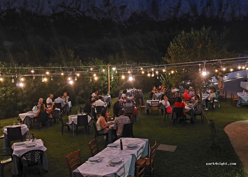 Possibility to sleep at night at a cost with use of the structure's bathrooms and water supply. Typical Sardinian dinner, dessert and drinks included.
