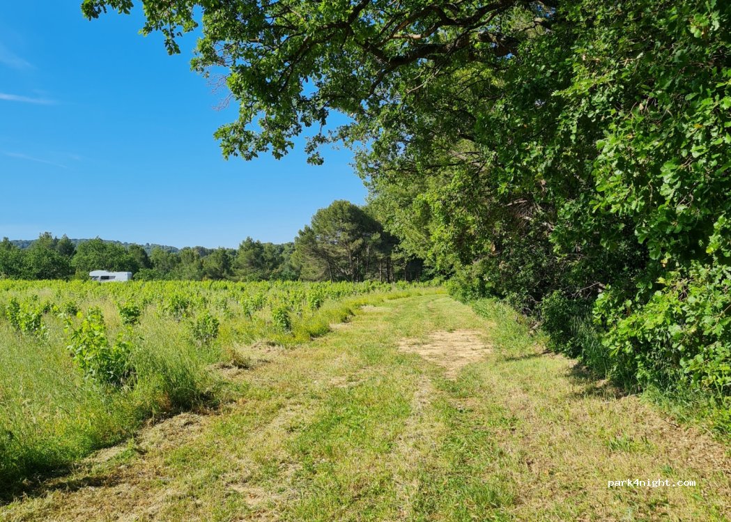 Emplacement dans les vignes. Calme absolu. La propriétaire des lieux est très sympathique, nous a expliqué tous les lieux à découvrir. Sommes prêt de Pernes-les-Fontaines à visiter. Petit musée de la résistance bien fait. Pas de service. Possibilité d’électricité pas eu besoin grâce aux panneaux solaires. Sommes repartis avec trois bouteilles de vin de leur récolte. Parfait