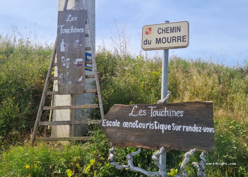 Super étape. Excellent accueil convivial et chaleureux. Emplacements dans les vignes. Douche et sanitaire ok. Le vin rouge Domaine Les Touchines de leur production bio est d'un très haut niveau qualitatif. Nous nous arrêterons à nouveau, au moins pour faire le plein........de vin !!!
