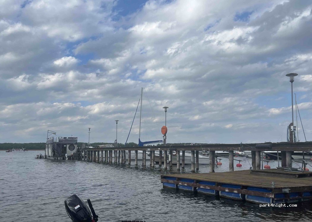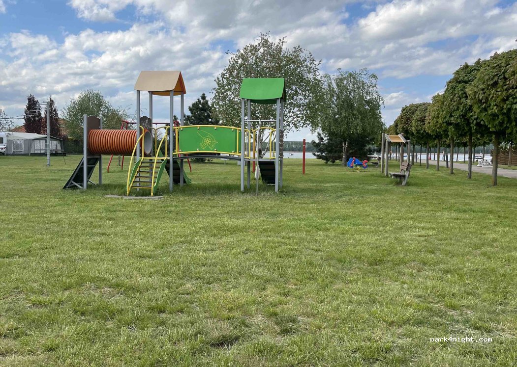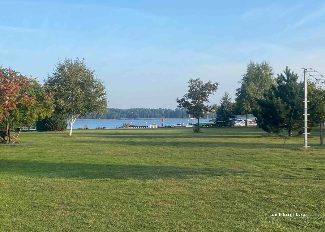 Camping situé au bord du lac avec plage et pontons pour se baigner. Possibilité de faire du paddle, Pédalos. Sanitaires propres. Il faut payer à l'accueil pour y dormir 36 pln pour 2 adultes en van sans électricité. Les douches sont en plus 10 pln. Les toilettes ferment à 22h, mais il y a une clé pour les campeurs. On y a passé une excellente soirée et nuit calme. Très beau coucher de soleil !