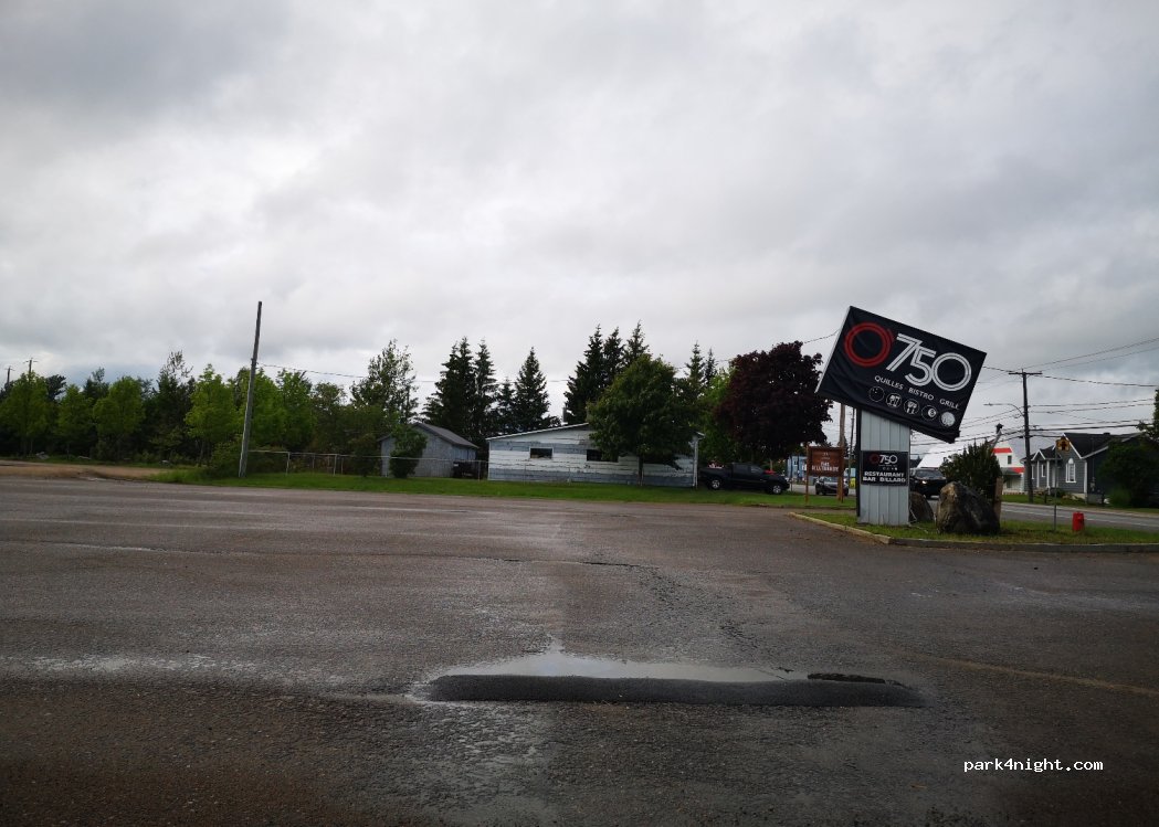 Proprio confirme que c'est la seule place acceptée par la Ville où c'est possible de passer la nuit. Il offre l'accès à SDB jusqu'à la fermeture de bar. Vous pourriez également jouer aux guilles, machines et billard, profiter la terrain de tennis juste à côté et dégourdir les jambes au parc De la Tourbière