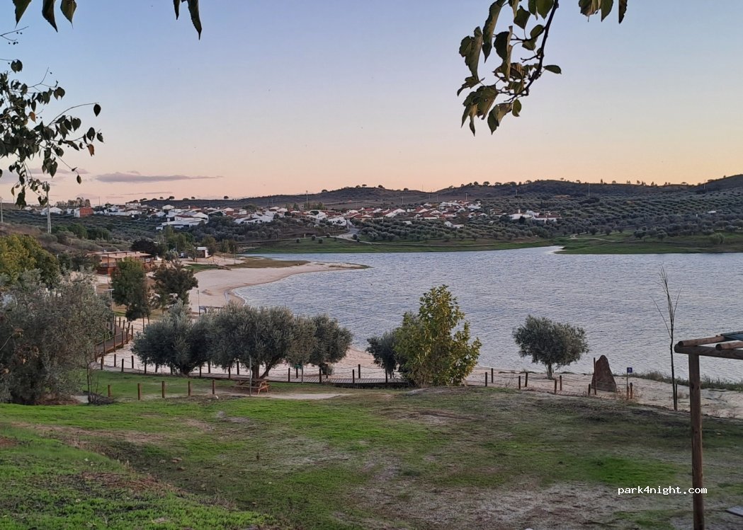 Excelente local junto à praia fluvial para pernoitar, sem serviços, com bar e wc, uma das melhores praias fluviais do Alqueva, bom restaurante na aldeia ( o Aficionado)