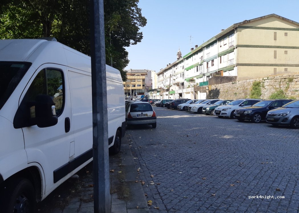 Muitos lugares para estacionar a carrinha de dia. Dormimos neste estacionamento que é grátis e que é plano. Sitio calmo, com uma escola ao lado. Bom para pernoitar